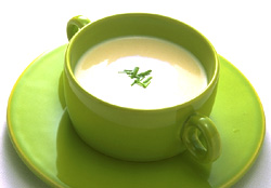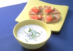 きゅうり2本はいちょう切りにし、塩小さじ1弱をふっておきます。ミント2本分の葉をせん切りにし、いったん水でさらしてから水気をきっておきます。ニンニク2かけはみじん切りにして、そのまままな板の上で塩小さじ2を加え、包丁でつぶすようにしながらすり混ぜます。プレーンヨーグルト1 lにニンニクを加えてよく混ぜ、水気をきったきゅうり、ミントの葉、黒こしょうを混ぜます。