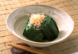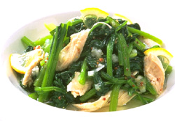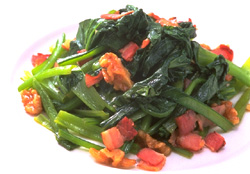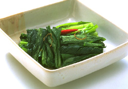 鍋に油大さじ2を熱し、長ねぎのみじん切り大さじ2を香りが出るまで炒め、しらす干し30gを加えて炒めます。さらに5cm長さに切ったほうれん草300g、水大さじ3を加えて炒め、塩味が足りなければ塩少々を加えます。 出典:『酒井美代子の今夜は台湾料理』(酒井美代子 著、農文協刊)